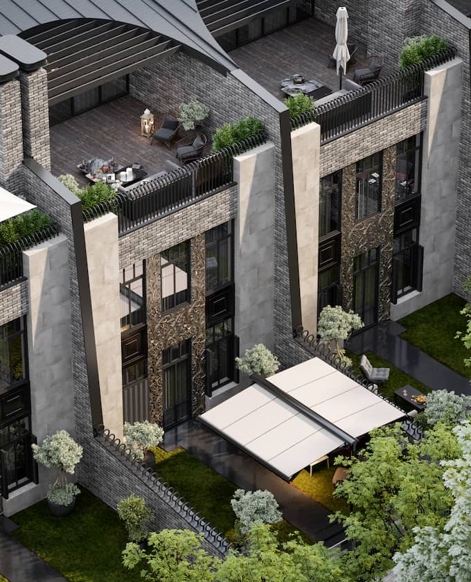 Архитектурная концепция 8 Yards возвращает к началу истории таунхаусов – городских домов для аристократов из викторианской Англии. Именно таунхаусы сформировали облик премиальных районов Лондона – в том числе знаменитой Белгравии. 8 Yards — переосмысление привычного формата жизни в центре Москвы. Это единственные новые таунхаусы в центре Москвы.